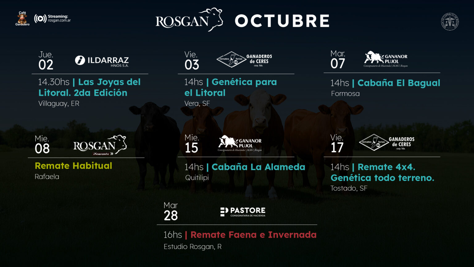 AHORA EN VIVO REMATE EN VIVO AHORA EN VIVO REMATE EN VIVO AHORA EN VIVO REMATE EN VIVO EN VIVO 08:30 Hs REMATE EN VIVO EN VIVO 08:30 Hs Click aquí AHORA EN VIVO Click aquí EN VIVO 14:00 Hs Remate 4 X 4 Genética todo terreno REMATE EN VIVO EN VIVO 21:00 Hs Seleccion de Vientres – Camara de Cabaña Santafesinas REMATE EN VIVO EN VIVO 14:00 Hs Cuarto de Milla – Gran Remate y Competencia de Campo REMATE EN VIVO Click aquí Remate 4 X 4 Genética todo terreno 17 de October PREOFERTAS Seleccion de Vientres – Camara de Cabaña Santafesinas 14 de November PREOFERTAS Cuarto de Milla – Gran Remate y Competencia de Campo 15 de November PREOFERTAS Cuarto de Milla – Gran Remate y Competencia de Campo 15 de November PREOFERTAS Cuarto de Milla – Gran Remate y Competencia de Campo 15 de November PREOFERTAS Cuarto de Milla – Gran Remate y Competencia de Campo 15 de November PREOFERTAS Remate Faena – Invernada 28 de October Click aquí Remate Colombo y Colombo desde Santa Fe 28 de November REMATE EN VIVO Remate Habitual Noviembre 12 de November REMATE EN VIVO Remate Faena – Invernada 28 de October Click aquí Gran Remate 33° Aniversario 7 de November REMATE EN VIVO Remate 4 X 4 Genética todo terreno 17 de October REMATE EN VIVO Seleccion de Vientres – Camara de Cabaña Santafesinas 14 de November REMATE EN VIVO Cuarto de Milla – Gran Remate y Competencia de Campo 15 de November REMATE EN VIVO Remate 4 X 4 Genética todo terreno Click Aqui Seleccion de Vientres – Camara de Cabaña Santafesinas Click Aqui Cuarto de Milla – Gran Remate y Competencia de Campo Click Aqui Cuarto de Milla – Gran Remate y Competencia de Campo Click aquí Cuarto de Milla – Gran Remate y Competencia de Campo Click aquí Haz clic aquí Haz clic aquí Haz clic aquí Precios Rosgan En esta sección podrá encontrar todos los precios de cada remate que realizó el mercado, así como los remates especiales y los remates de cabañas. ver precios ver precios Precio ÍndiceOctober Futuro Rofex MatbaOctober Invernada $3.968,37 Cría $0,00 Índice Ternero October $ 4.536,91 Cada ganadero debe colocar su granito de arena para fortalecer los mercados, sin precios de referencia no es posible el crecimiento de todos. Newsletter Suscribite aquí Rosgan Seguir Twitter oficial del único mercado ganadero televisado de Argentina integrado por la Bolsa de Comercio de Rosario junto a doce casas consignatarias del país. Rosgan @rosgan_bcr · 25 Sep El próximo MIércoles 8 de Octubre, Rafaela será el centro de la ganadería. 📍Sociedad Rural de Rafaela 📺 Remate presencial y en vivo por streaming https://www.youtube.com/Rosgan 🔔 Suscribite a nuestro canal de YouTube y viví el remate en primera fila, estés donde estés. Responder en Twitter 1971170109009051924 Retuitear en Twitter 1971170109009051924 Dar me gusta en Twitter 1971170109009051924 1 Twitter 1971170109009051924 Rosgan @rosgan_bcr · 17 Sep Conocé los números del mes a través de nuestra Web/App 👉🏼 📲Descargá nuestra App y enterate de todas las novedades: https://app.rosgannet.com https://www.instagram.com/p/DOtO6hRjzDd/?igsh=ODBuOG16MThkMDN2 Responder en Twitter 1968322332268924958 Retuitear en Twitter 1968322332268924958 Dar me gusta en Twitter 1968322332268924958 Twitter 1968322332268924958 Load More