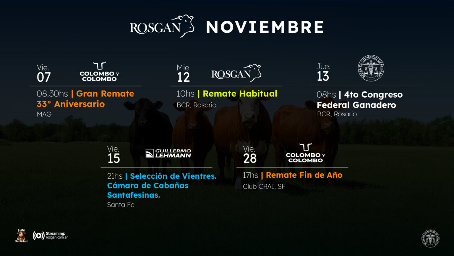 AHORA EN VIVO REMATE EN VIVO AHORA EN VIVO REMATE EN VIVO AHORA EN VIVO REMATE EN VIVO EN VIVO 08:30 Hs REMATE EN VIVO EN VIVO 08:30 Hs Click aquí AHORA EN VIVO Click aquí EN VIVO 14:00 Hs Cabaña La Alameda. Invitada: Los Guasunchos de werthein REMATE EN VIVO EN VIVO 14:00 Hs Remate 4 X 4 Genética todo terreno REMATE EN VIVO EN VIVO 21:00 Hs Seleccion de Vientres – Camara de Cabaña Santafesinas REMATE EN VIVO Click aquí Cabaña La Alameda. Invitada: Los Guasunchos de werthein 15 de October PREOFERTAS Remate 4 X 4 Genética todo terreno 17 de October PREOFERTAS Seleccion de Vientres – Camara de Cabaña Santafesinas 14 de November PREOFERTAS Seleccion de Vientres – Camara de Cabaña Santafesinas 14 de November PREOFERTAS Seleccion de Vientres – Camara de Cabaña Santafesinas 14 de November PREOFERTAS Seleccion de Vientres – Camara de Cabaña Santafesinas 14 de November PREOFERTAS Remate Faena – Invernada 28 de October Click aquí Remate Colombo y Colombo desde Santa Fe 28 de November REMATE EN VIVO Remate Habitual noviembre 12 de November REMATE EN VIVO Remate Faena – Invernada 28 de October Click aquí Gran Remate 33° Aniversario 7 de November REMATE EN VIVO Cabaña La Alameda. Invitada: Los Guasunchos de werthein 15 de October REMATE EN VIVO Remate 4 X 4 Genética todo terreno 17 de October REMATE EN VIVO Seleccion de Vientres – Camara de Cabaña Santafesinas 14 de November REMATE EN VIVO Cabaña La Alameda. Invitada: Los Guasunchos de werthein Click Aqui Remate 4 X 4 Genética todo terreno Click Aqui Seleccion de Vientres – Camara de Cabaña Santafesinas Click Aqui Seleccion de Vientres – Camara de Cabaña Santafesinas Click aquí Seleccion de Vientres – Camara de Cabaña Santafesinas Click aquí Haz clic aquí Haz clic aquí Haz clic aquí Precios Rosgan En esta sección podrá encontrar todos los precios de cada remate que realizó el mercado, así como los remates especiales y los remates de cabañas. ver precios ver precios Precio ÍndiceOctober Futuro Rofex MatbaOctober Invernada $3.968,37 Cría $0,00 Índice Ternero October $ 4.536,91 Cada ganadero debe colocar su granito de arena para fortalecer los mercados, sin precios de referencia no es posible el crecimiento de todos. Newsletter Suscribite aquí Rosgan Seguir Twitter oficial del único mercado ganadero televisado de Argentina integrado por la Bolsa de Comercio de Rosario junto a doce casas consignatarias del país. Rosgan @rosgan_bcr · 25 Sep El próximo MIércoles 8 de Octubre, Rafaela será el centro de la ganadería. 📍Sociedad Rural de Rafaela 📺 Remate presencial y en vivo por streaming https://www.youtube.com/Rosgan 🔔 Suscribite a nuestro canal de YouTube y viví el remate en primera fila, estés donde estés. Responder en Twitter 1971170109009051924 Retuitear en Twitter 1971170109009051924 Dar me gusta en Twitter 1971170109009051924 1 Twitter 1971170109009051924 Rosgan @rosgan_bcr · 17 Sep Conocé los números del mes a través de nuestra Web/App 👉🏼 📲Descargá nuestra App y enterate de todas las novedades: https://app.rosgannet.com https://www.instagram.com/p/DOtO6hRjzDd/?igsh=ODBuOG16MThkMDN2 Responder en Twitter 1968322332268924958 Retuitear en Twitter 1968322332268924958 Dar me gusta en Twitter 1968322332268924958 Twitter 1968322332268924958 Load More